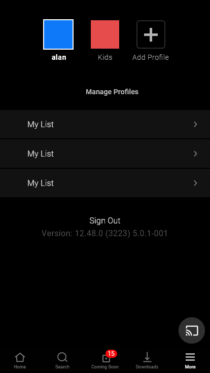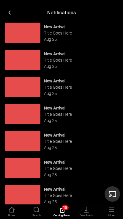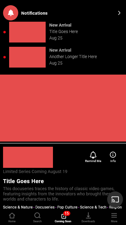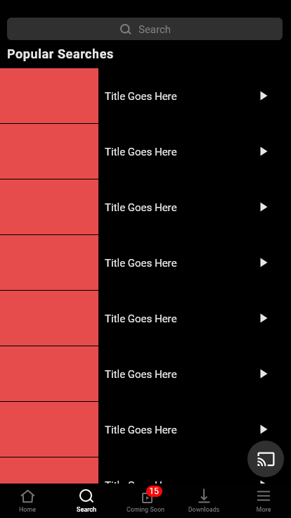 After all that I was able to create something that had the same feel and look. Go ahead and give it a try. You can scroll and click certain elements(they will be hinted in blue if you do not click on them). You can scroll through the app, click on the menu icons, click the chromecast button and more. It is not the full app but it gives the idea of what can be done all without having to code anything. Its easy to get feed back on it and make changes